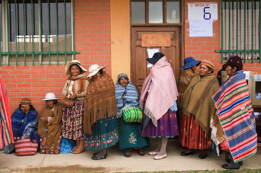 Mujeres aimaras y otros ciudadanos mantienen la expectativa. Desde las 8:00 am, el 90% de las mesas electorales ya estaban activas. Más de 5.400 cargos públicos, entre gobernadores, alcaldes y legisladores regionales, están en juego.